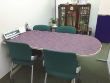 □ 効率の良いレイアウトで、打ち合わせコーナーやスタッフのくつろぎの